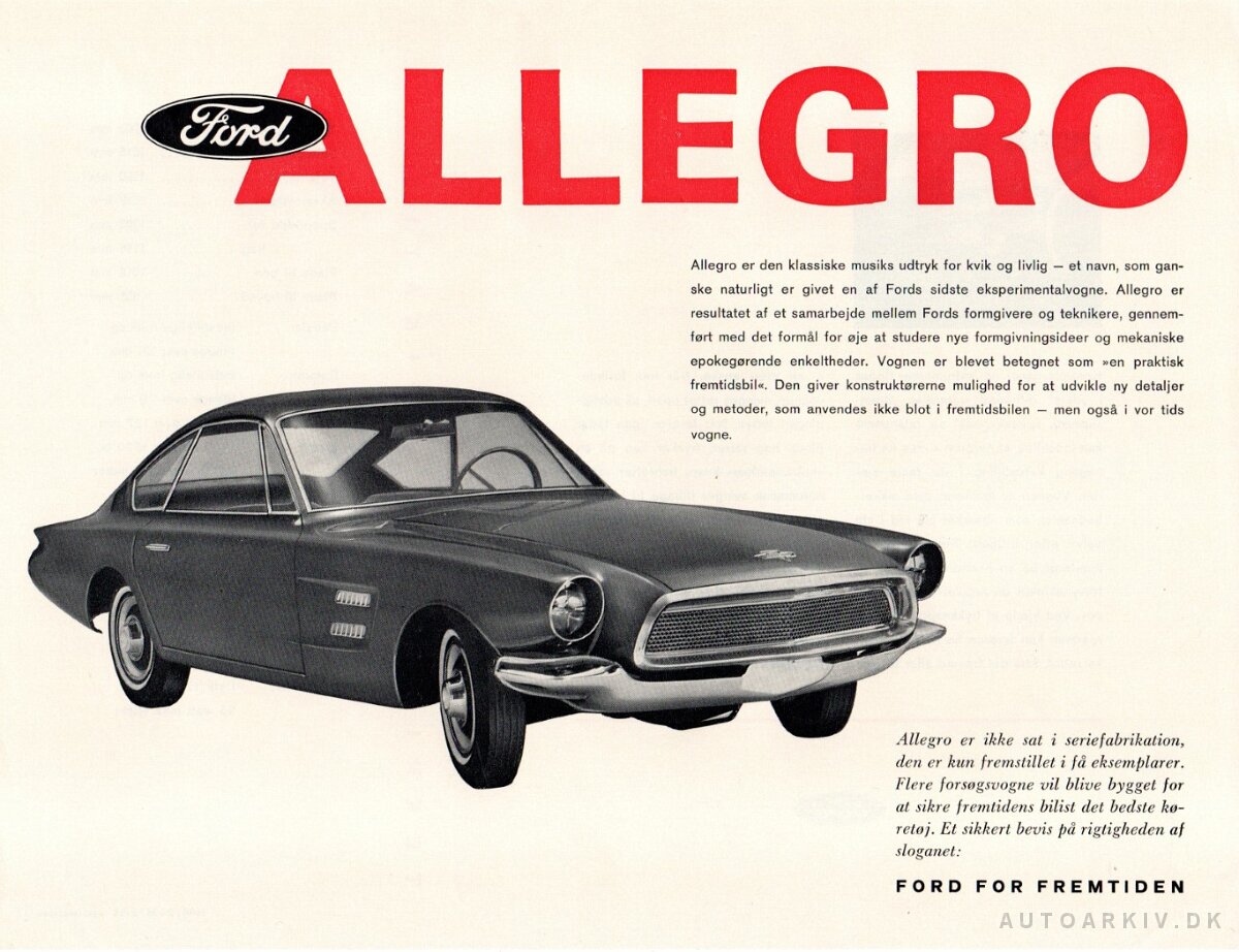 FORD EXPERIMENTAL ALLEGRO FORD EXPERIMENTAL AURORA FORD EXPERIMENTAL BORDINAT COBRA FORD EXPERIMENTAL COUGAR II FORD EXPERIMENTAL GAS TURBINE TRUCK FORD EXPERIMENTAL GT-40 FORD EXPERIMENTAL MAXIMA FORD EXPERIMENTAL MUSTANG I FORD EXPERIMENTAL MUSTANG II FORD EXPERIMENTAL NUCLEON FORD EXPERIMENTAL SEATTLE-ITE XXI FORD EXPERIMENTAL THE TWISTER FORD EXPERIMENTAL VOLANTE 1964.2 FORD ALLEGRO dk sheet 2166 V8LTD